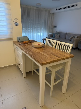 האי יכול לשמש כפינת אוכל יומיומית, אזור עבודה מרווח להכנת אוכל או מקום ישיבה מרכזי למשפחה ולאירוח.