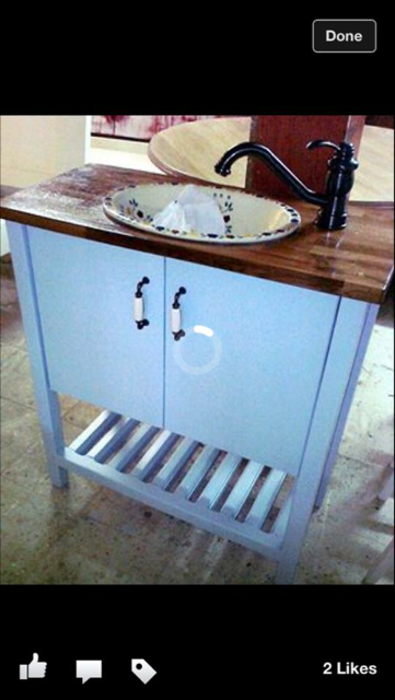 ארונות אמבטיה ארון אמבטיה קטן וחמוד מעוצב להפליא בצבע תכלת פסטל הכולל משטח אלון בגוון אגוז בהיר משולב בסולם לקיפול מגבות