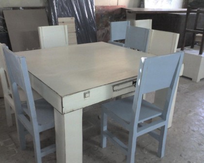 שולחנות אוכל פינת אוכל עכשווית משולבת תכלת ושמנת מדהימה ניתן בכל שילוב צבע לכו על זה ... 140X140 גודלת במטר נוסף מתאימה ל-12 סועדים עשויה מעץ מלא 100% פרובנס בהתגלמותו.